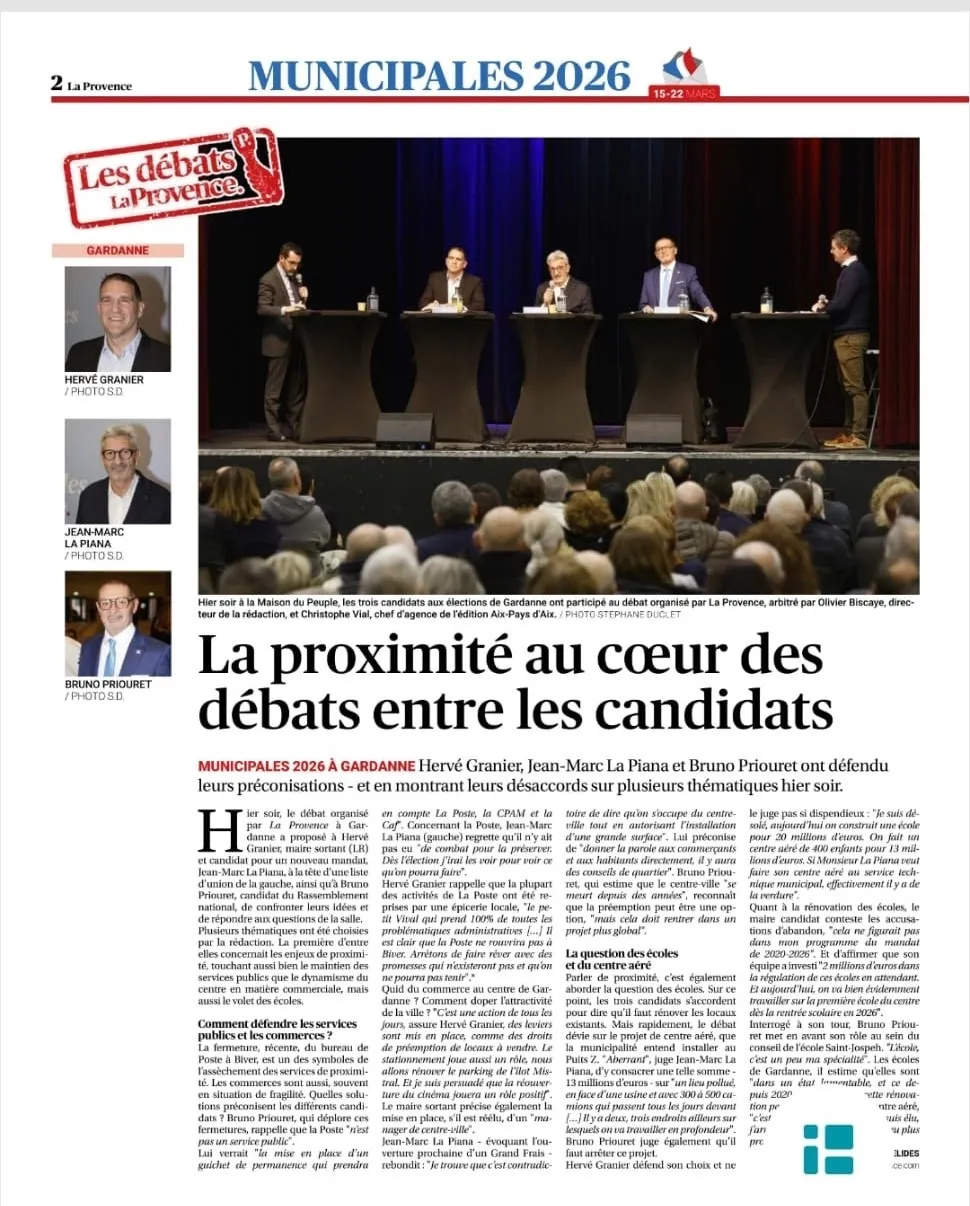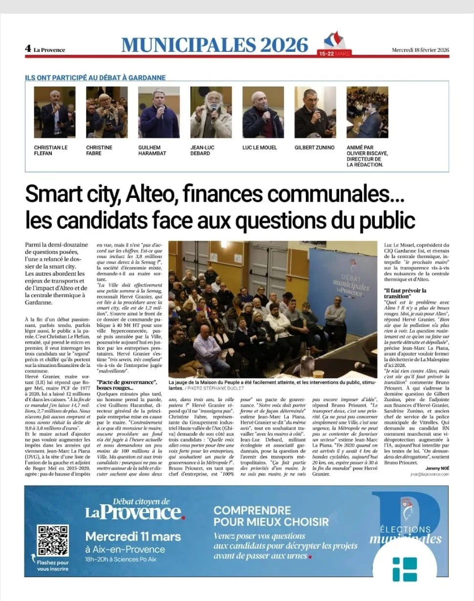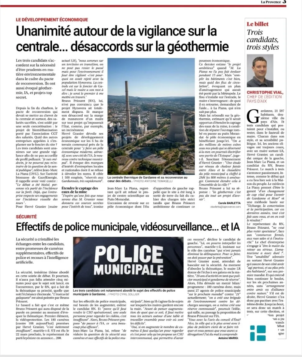 Nous remercions la Provence pour l'organisation du débat entre les 3 candidats, qui a eu lieu à Gardanne le 17 février.